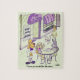 A jigsaw puzzle with a funny cartoon about dogs meeting in a cafe. The background, image and text can be personalized. Original artwork by DBcartoons.