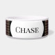 Hundefutter Schüssel aus weißer Keramik hat ein interessantes schwarzes Muster als Hintergrund für Ihren Hundenamen. HAMbyWhiteGlove.