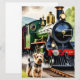 Dog Greeting steam train Karte