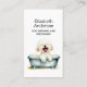 Niedlicher Hundezüchter Aquarellbild eines glücklich flauschigen Bichon Frise Welpenhundes in einer Badewanne. Ideal für Haustierzüchter, die sich auf das Baden und Pflegen von Hunden spezialisiert haben. Bereit, mit Ihren benutzerdefinierten Informationen personalisiert zu sein. Firmenname, Titel, Anschrift, Telefonnummer, E-Mail und Website. Sie können weitere Informationen hinzufügen oder einige löschen.