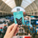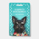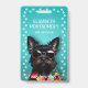 Ein niedlicher, schwarzer Miniaturschnauzer auf helltürkisfarben mit weißer Pfotenabdruck, dieses Abzeichen des Hundezüchters Business ID ist eine lustige Art, unsere Mitarbeiter zu identifizieren.