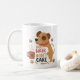 This cheerful mug features a playful cartoon pup, paw prints, a bone, and the relatable quote: