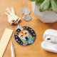 Der Schlüsselanhänger des niedlichen Hundeliebhabers mit Hundeschlitten und Foto druckt Rahmen. Weiße Pfoten drucken auf dem Hintergrund des Fotos. Klicken Sie auf Diese Vorlage personalisieren, um das Welpen-Foto durch Ihr eigenes Welpen-Foto zu ersetzen und ein eigenes, einzigartiges Design zu erstellen. Ein personalisiertes Geschenk für Welpenliebhaber! Wenn du will, mehr zu bearbeiten, kannst du einige Pfow-Drucke durch benutzerdefinierten Text oder Welpennamen ersetzen.
