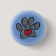 Dog Pfow Druck und Herz Wasserfarbe in rot, schwarz und grau. Halbzeiteffekt auf das Bild angewendet. Blaue Hintergrundversion. Benutzerdefinierte Schaltflächen. Geschenkidee für Hundefreunde.