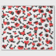 Niedliche Cartoon Stil Hundeschlitten und Knochen. Maßgeschneiderte Geschenkpapier-Rollen. Version des roten Herzmusters. Geschenkpackidee für Hundefreunde und ihre Hunde.