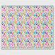 Überall drucken Bilder von Hundepfoten. Farbvolles Design im Cartoon. Version mit weißem Hintergrund. Maßgeschneidertes Packpapier. Geschenkpackidee für Hundefreunde und ihre Haustiere.