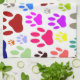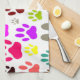 Küchenhandtücher nach Maß. Überall drucken Bilder von Hundepfoten. Farbvolles Design im Cartoon. Geschenkidee für Hundefreunde jeden Alters.