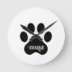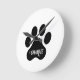 Dog Paw Name Silhouette Design Runde Wanduhr