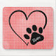 Dog Paw Print and Heart on Gingham Mousepad