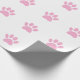 Karikaturenpaw in rosa gedruckt. Version mit weißem Hintergrund. Dekorative, minimalistische Geschenkpapier-Rollen für Zuhause und Unternehmen wie Heimtierläden. Geschenkidee für Hundefreunde.