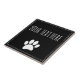 Cartoon Hundepete in weiß mit schwarzem Hintergrund bedruckt. Viereckige Version. Keramik mit benutzerdefiniertem Text. Geschenkidee für Hundefreunde.