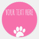 Dog Paw Print Custom Text Pink Runder Aufkleber