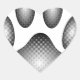 Ein Hundepflaster, der aus schwarzen und weißen Punkten besteht. Originelles Design im Cartoon.