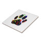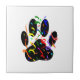 Dog Pfow Druck mit Konfetti und Party-Streamer. Maßgeschneiderte quadratische Keramiken mit originellem Design. Einzigartige Geschenkidee.