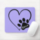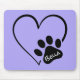 Schwarzer Pfotendruck mit Namen und Herz auf lila Hintergrund. Name und Hintergrundfarbe können geändert werden.