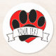 Dog Paw Print Red Heart Banner Runder Pappuntersetzer