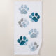 Dog Paw Prints - Beach Waves and Sand Strandtuch