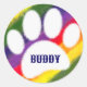 Dog Pawprint Rainbow Watercolor Individuelle Name Runder Aufkleber