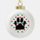 Dog Pawprint Red Green Polka Dots Keramik Kugel-Ornament