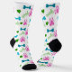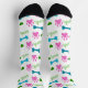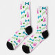 Suchen Sie ein Geschenk für den modischen Hundefreund in Ihrem Leben? Sie werden diese Socken mit handgezeichneten Pfoten aus rosa Hunden, blauen Knochen, grünen Herzen und dem Wort woof in grün Liebe geben.