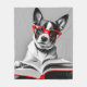Schwarz-Weiß-Bild eines Hundes Lesen mit einer Farbspritze aus rotem Glas ein Buchcover
