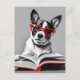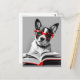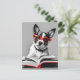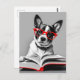 Schwarz-Weiß-Bild eines Hundes Lesen mit einer Farbspritze aus rotem Glas ein Buchcover