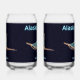 Lass ihnen, was du im Winter für Spaß machst. Ein Hund schlug überlagert auf einem sternigen Hintergrund. Text liest, "Alaska" erscheint in leuchtendem Blau und Weiß. Sie können Ihren eigenen zusätzlichen Text sowohl auf dem Schlitten als auch unten hinzufügen.