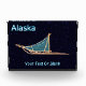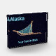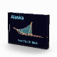 Lass ihnen, was du im Winter für Spaß machst. Ein Hund schlug überlagert auf einem sternigen Hintergrund. Text liest, "Alaska" erscheint in leuchtendem Blau und Weiß. Sie können Ihren eigenen zusätzlichen Text sowohl auf dem Schlitten als auch unten hinzufügen.