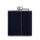 Behalt dich warm auf dem Weg. Eine schlichte weiße Silhouette eines Hundes schlug auf einem Sternenfeld-Hintergrund.