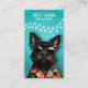 Der niedliche, schwarze Miniaturschnauzer mit hellen Türkisfarben und weißen Pfoten verleiht dem Hundeschlittenbesuch eine angenehme Art, die Gäste an ihre nächsten Termine zu erinnern. Ihr Name auf der Vorderseite und Details auf der Rückseite.