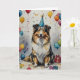 Eine fröhliche Aquarellillustrierung eines Hundes mit einem festlichen Party, umgeben von bunten Ballons, Konfetti und verpackten Geschenken. Mit seinem fröhlichen Ausdruck und seinem spielerischen Hintergrund erweckt dieses charmante Design den Spaß und die Begeisterung eines Geburtstags - perfekt für Hundefreunde!