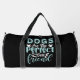 This touching black duffle bag features the heartfelt phrase "DOGS Are The Perfect Best Friend." The distressed blue text and paw print accents add a loving touch. Perfect for dog lovers, this bag is a beautiful way to express your appreciation for the unconditional love and loyalty that dogs bring into our lives. Edit color of the bag caps and body in the Design tool to your favored colors.