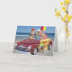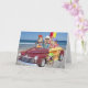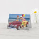 Two yellow Labs and a cattle dog in Hawaiian attire in a Woodie. A Bull Dog in a Hawaiian bandana is with them. You can customize the text. The woodie, the bull dog and the ocean were all separate pictures from publicdomainpictures.net.