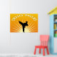Ein Mann der Kampfkunst tritt vor einem Sonnenaufgang-Design auf diesem Plakat für Karate, Tae Kwon Do Zimmer.