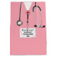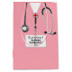 Abschluss-Geschenktasche mit rosa Hospital-Peeling und Stethoskop-Kunst: Bearbeiten Sie den Text, um den Namen des Arztes, der Ärztin oder des Krankenschwesters hinzuzufügen.
