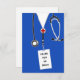 Der Arzt dankt Ihnen für die Karten für den Doktorgrad der Medizin und für die Danksagungen des Arztes, die blaue Klinikscheuchen und Stethoskop-Illustrationen enthalten.