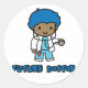 Ein niedlicher Cartoon Typ, der sich um einen Arzt bemüht.