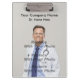 Fertigen Sie dieses kundenspezifische Klemmbrett der Doktorthemaporträt-Schablone besonders an, indem Sie einfach die Fotoschablone durch ein Bild Ihrer Residentdoktoren, Krankenschwestern oder Firmenlogos ersetzen, wenn Sie bevorzugen. Entworfen für Krankenhauspersonal, DoktorBüroangestellte oder des im Dienstmedizinische Fachleute Personals der medizinischen Klinik.