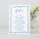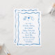 Erleben Sie die Braut mit den inspirierten italienischen Brauduschen-Einladungen in handgeschriebenem Stil mit kursiven Schriftzeichen, die mit einem weißen Hintergrund mit einer wellenförmigen, kreideblauen Bändchengrenze in mediterranem Blau versehen sind. Handgezeichnete Illustrationen von Krawatte-Pasta, Wein und einer sizilianischen Zitrone ergänzen das Design für einen Sommer Amalfi Küste Look. Personalisieren Sie diese All-in-One-Brautdusche-Einladungen mit den Registrierungsinformationen der Braut, einschließlich eines benutzerdefinierten QR-Codes, auf der Rückseite, zusammen mit zusätzlichen Textfeldern, um Details wie Rezeptanfragen zu liefern. Diese eleganten mediterranen Einladungen haben ein hübsches handgefertigtes Gefühl und wirken besonders schön auf dem texturierten Haushaltspapier.