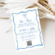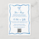 Diese QR-Code-Gehäuse-Karte koordiniert mit unseren Dolce Vita Brautduschen-Einladungen für eine schöne italienische inspirierte Angelegenheit. Das Design zeichnet sich durch handgeschriebene, kursive Schriftzeichen aus, die mit einem scharfen, in mediterran blau geformten Band und einer handgezeichneten Bogen-Illustration für einen sommerlichen Amalfi Coast Look betont werden. Personalisieren Sie die Registrierungsinformationen der Braut, einschließlich eines benutzerdefinierten QR-Codes, und verwenden Sie die Textfelder für weitere Informationen für Gäste. Ausgestellt mit Rezepturanfrage und unverpackter Geschenkanleitung/"Schaudusche".