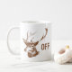 Ein Bild des Kopfes und der Geweihe eines Dollars und nahe bei ihm ist das Wort "OFF" = Dollar weg