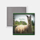 Dolly Llama fotografiert mit Blume Hintergrund und trägt ihren eigenen Hut. Der einzigartige Dolly Llama Magnet !