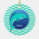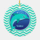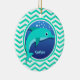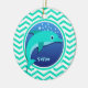 Coole, niedliche Kinder Ozean, Meeresleben, Themendesign mit Cartoon Aqua türkis Delphin auf aqua grün, türkis und weiß Zickzack Streifen Muster.