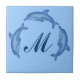 Ein Trio Delphine springen über das mittlere Monogramm in dieser Kachel. Der mittlere Buchstabe ist in einem Vorlagenformular und kann leicht in Ihren Buchstaben geändert werden. Der Hintergrund ist transparent, sodass Sie eine Farbe wählen können, die zu Ihrem Dekor passt, klicken Sie einfach auf Anpassen Es direkt unter dem Bild. Dann öffnen Sie rechts das Dropdown-Menü Bearbeiten.