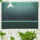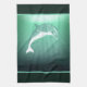 16" x 24" dunkelgrüne Küchentücher mit einem Fantasiebild eines Delfins in einem grünen Meer. Entsprechende Stoffserviette, Papiercocktail-Serviette, Tuch-Tischset, Papier-Tischset und Untersetzer. Sehen Sie sich die gesamte Sammlung von Küchentüchern unter Wasser im NAHRUNGSMITTEL/BEV an.| Linenabschnitt.