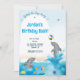 Der Dolphin Fun Beach Volleyball Kids Graphic Invitation taucht ein in den Spaß mit spielerischen Delphinen, die mitten in der Luft auf einem Beachvolleyball spielen, während farbenfrohe Fische direkt unter der Oberfläche schwimmen. Set gegen sanfte Blues im Ozean und belebte Blasen, ideal für ein Party im Sommer oder unter dem Meeresgeburtstag. Dieses personalisierte Party verbindet lebendige Bilder des Meereslebens mit fröhlicher Bewegung. Es ist ein Lieblingshotel für Kinder und eine bezaubernde Wahl für Eltern, die ein Delphin-Splash-Party oder Beachvolleyball-Thema planen.