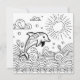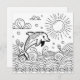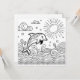 Niedliche Erwachsenenkarte. Ein bezaubernder Delphin, der in den Ozeanen spielt, kreiert Meereslebewesen mit einer speziellen Farbseite für Kinder.