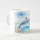 Ein freundlicher Delphin, der in der Natur schwimmt und springt. Aquarell