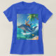 Delphin durch kristallklare Meereswellen. Der Delphin schwimmt anmutig und taucht auf und ab. Das Kaninchen hält sich mit seinen winzigen Pfoten an, die Ohren flattern in der Brise, die Augen sind sehr aufgeregt.