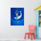 Dolphin Moon Mermaid Fantasy Art Poster. Der Mond wird zu einem weißen Delphin, der dabei hilft, eine Meerjungfrau hochzuheben, um ihren Seestern zu erreichen. Poster von Sue Halstenberg ist ein originales Kunstwerk